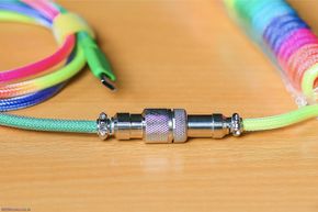 Theo thông tin từ phía 15Cables, cọng nối dài cổng C của mình phải làm lại từ đầu do lõi dây khác nhau, chủ yếu mất thời gian làm xoắn, còn quá trình hàn diễn ra khá nhanh. Cả 2 sợi đều được gắn chung trục GX12 để tiện tháo/lắp, đây thực sự là điều vô cùng tiện lợi mặc dù bản thân trước nay luôn xài cọng Type-C. Bên cạnh đó, mình cũng đang sở hữu thêm một cọng tích hợp cổng USB-A (từng mua đợt 27/2 ở bên NÀY) nhưng là trục GX16 (to hơn GX12), đây cũng là loại cáp xoắn màu rainbow dành cho phím cơ nhưng không phải do 15Cables gia công. Tính đàn hồi của cọng này không còn tốt ngay ở thời điểm mình tậu, màu sắc hơi chìm, không sáng như cọng được chia sẻ trong bài & dĩ nhiên mình luôn ưu ái một chỗ cho em nó yên vị trong hộc tủ.
